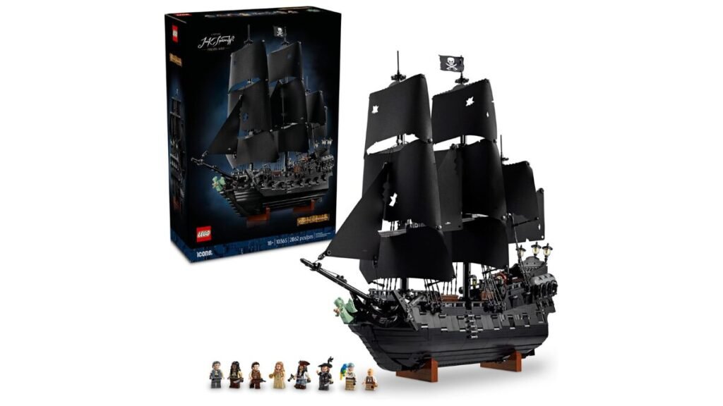 Em setembro de 2025, a LEGO ressuscitou o Black Pearl com o set 10365 Captain Jack Sparrow’s Pirate Ship, uma versão Icons massivamente ampliada. A comparação direta é inevitável — e reveladora.